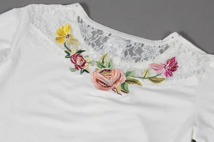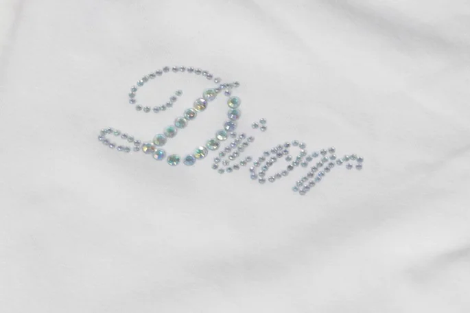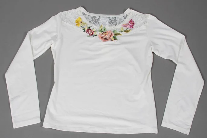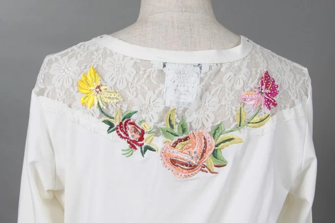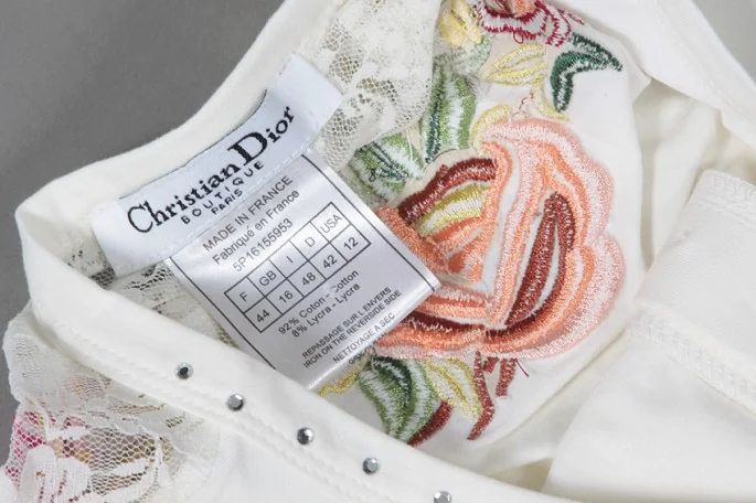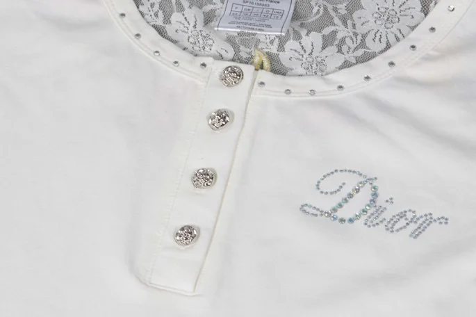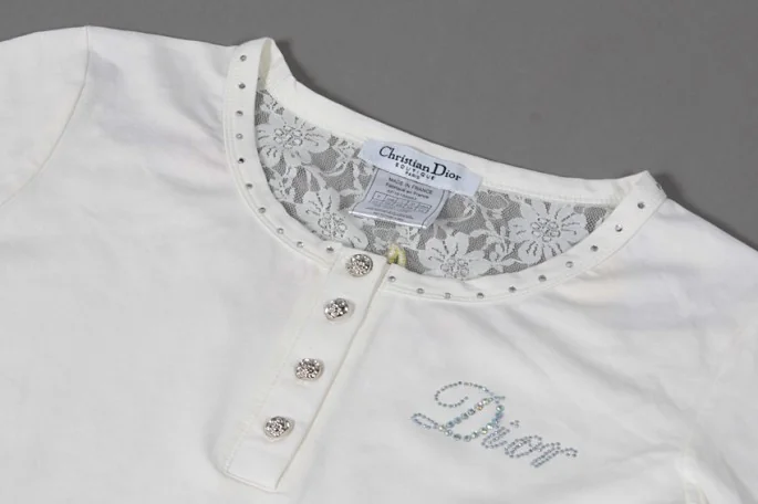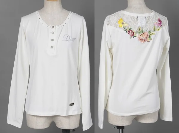 クリスチャン・ディオール Christian Dior 後レース刺繍ラインストーン飾り長袖綿カットソー きなり44