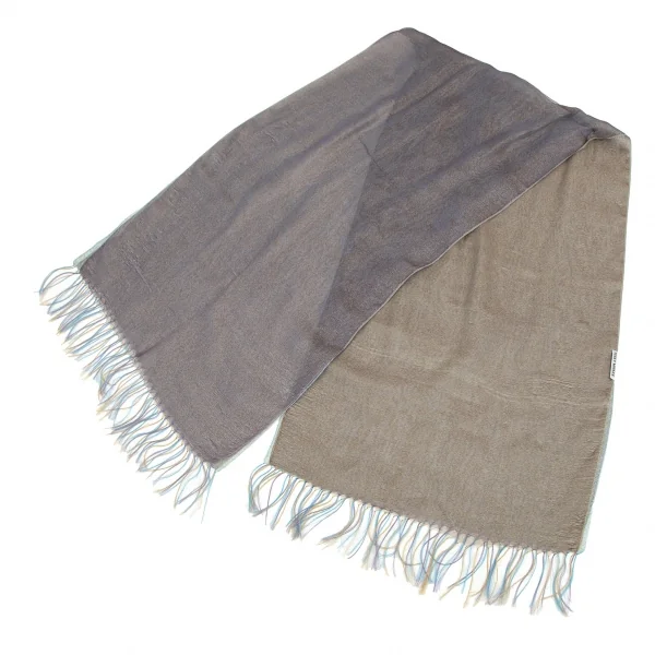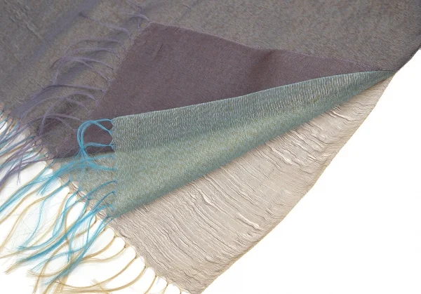 イッセイミヤケISSEY MIYAKE 三重シースルーフリンジストール ブルー茶