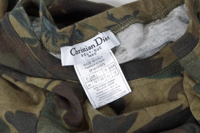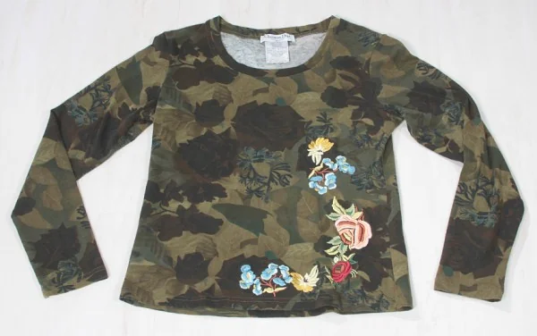 クリスチャン・ディオール Christian Dior 迷彩風ばら柄長袖刺繍綿カットソー カーキ44