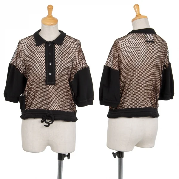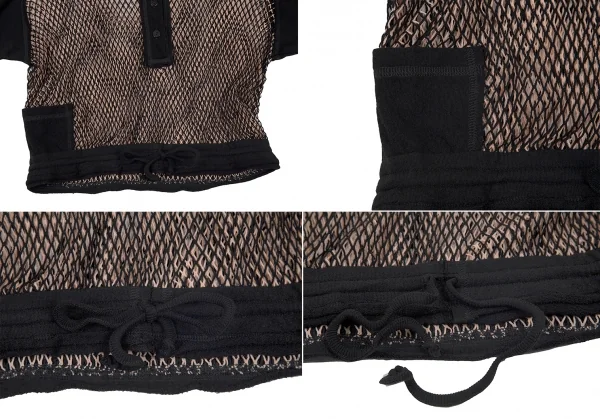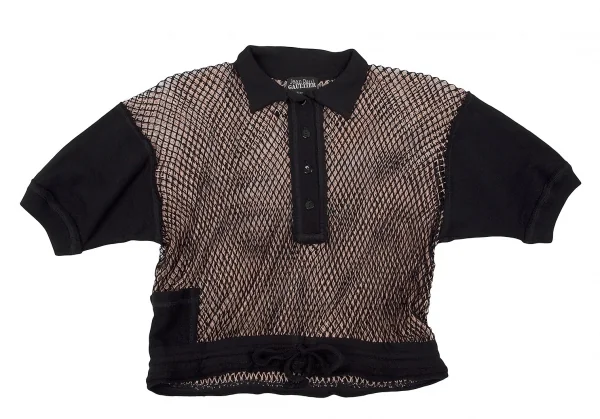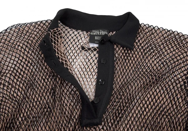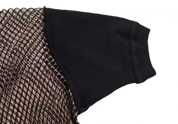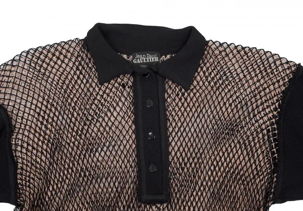 ジャンポールゴルチエ マイユファムJean Paul GAULTIER MAILLE FEMME メッシュレイヤード変形プルオーバー 黒ピンクベージュS