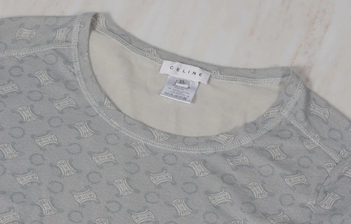 セリーヌ CELINE 全セリーヌロゴ長袖綿カットソー グレーXL