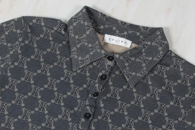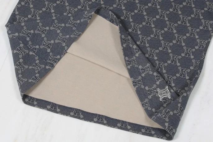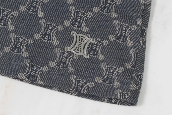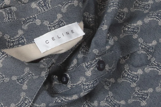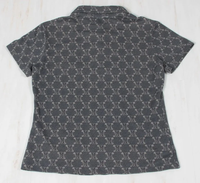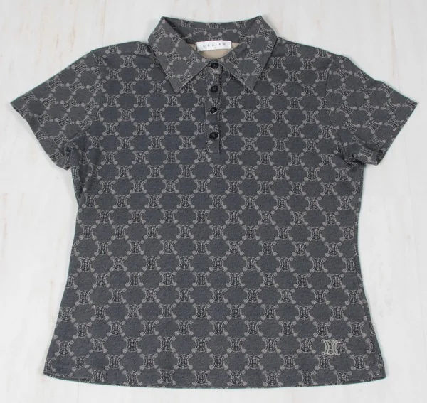 セリーヌ CELINE 全セリーヌロゴ半袖ストレッチポロシャツ 紺M〜L