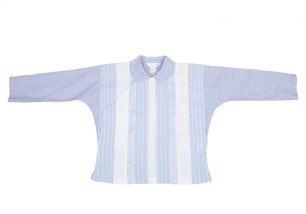 コムデギャルソン シャツCOMME des GARCONS SHIRT マルチストライプ切り替えスナップボタンシャツ 水色白L