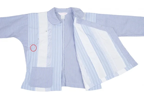 襟裏に薄汚れ、前身頃にシミ・スナップボタンの付け替え跡がありますが、前を閉じた時には隠れます(画像参照)。その他目立ったシミ、汚れ、ほつれ等ありません。クリーニング済み