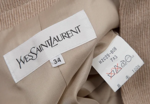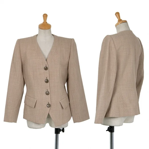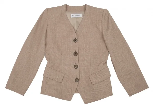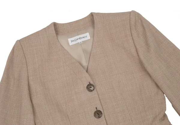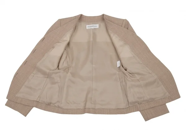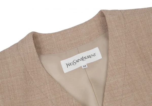 イヴサンローランYves Saint Laurent ノーカラーウールジャケット ベージュ34