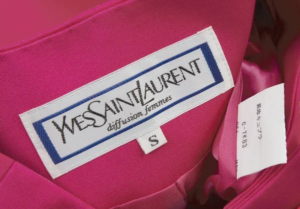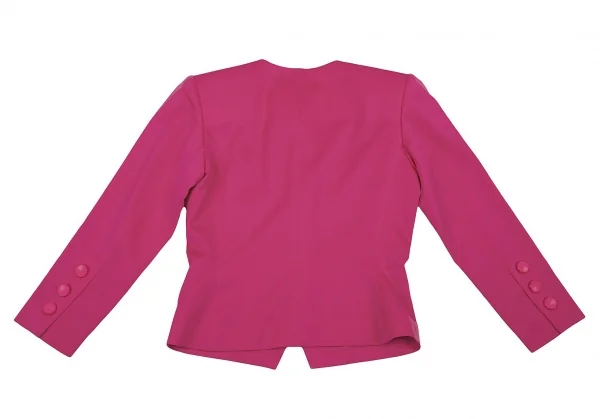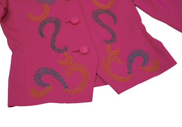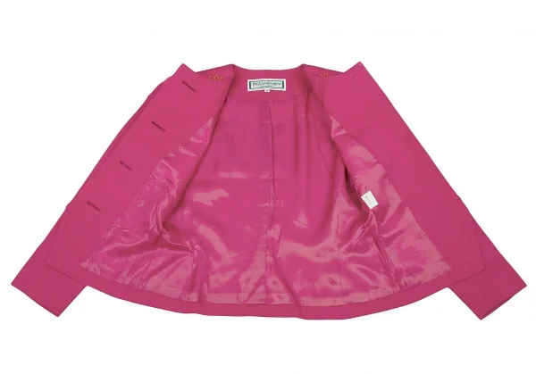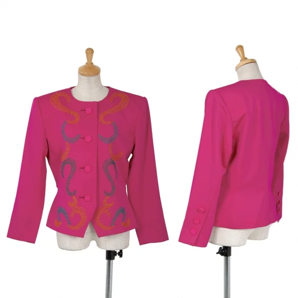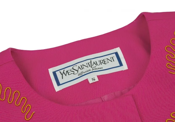 イヴサンローランYves Saint Laurent 刺繍模様ノーカラーウールジャケット ピンクS