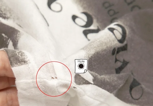 透け感のある生地です。右脇の縫い目が広がっていて穴のようになっています(画像参照)。その他に目立ったシミ、汚れ、ほつれ等ありません。クリーニング済み