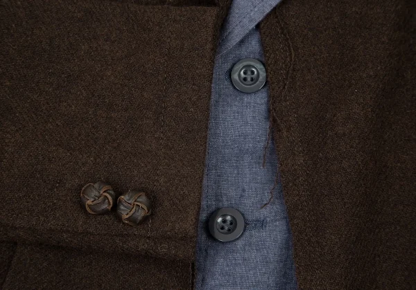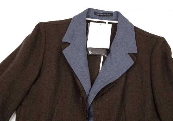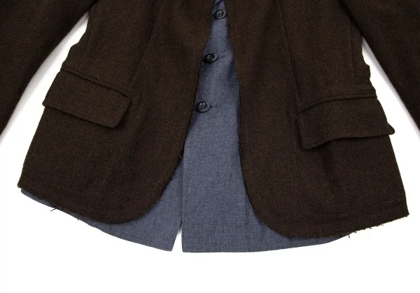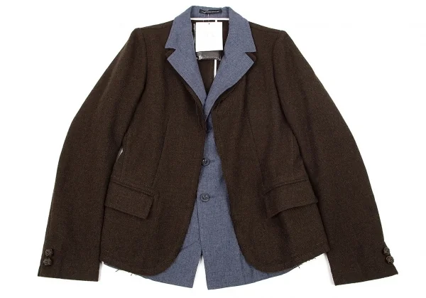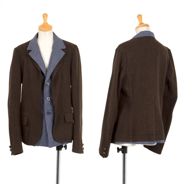 新品!ワイズY's ツィードリネンレイヤードデザインジャケット 茶青2