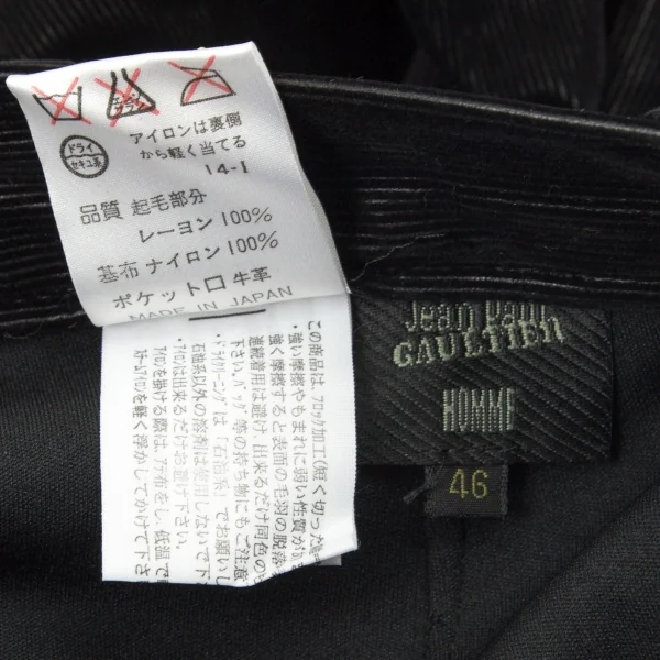 ジャンポールゴルチエ オムJean Paul GAULTIER HOMME レザートリムコーデュロイパンツ 黒46