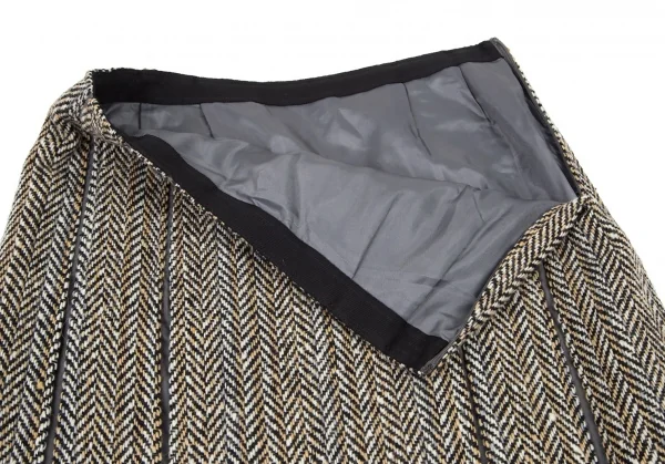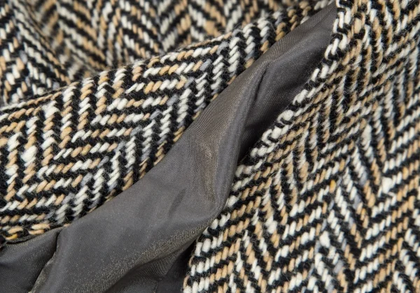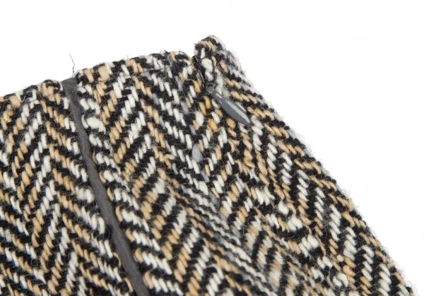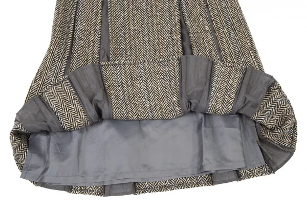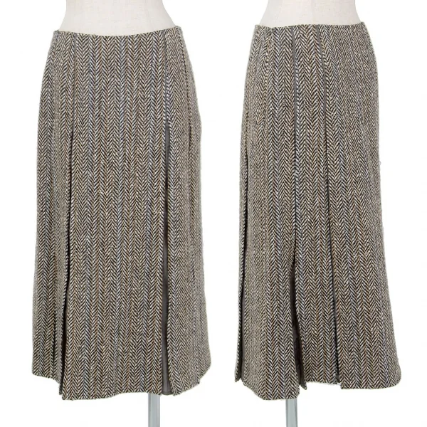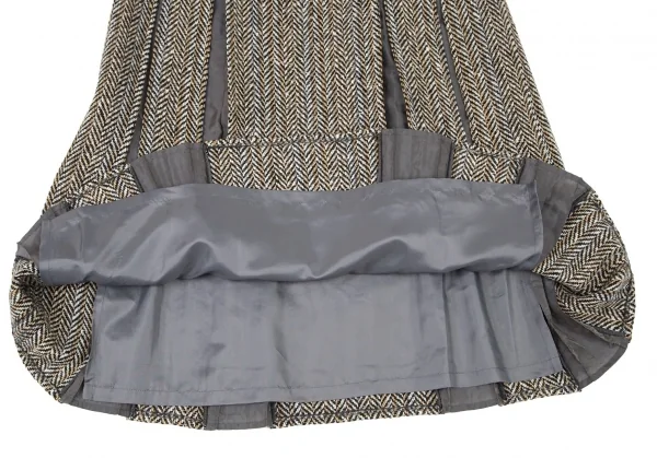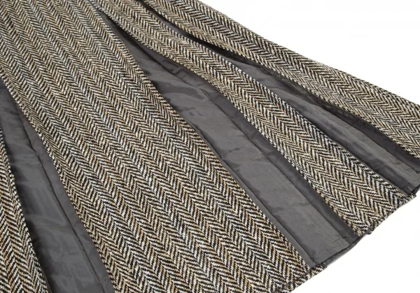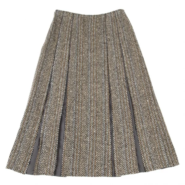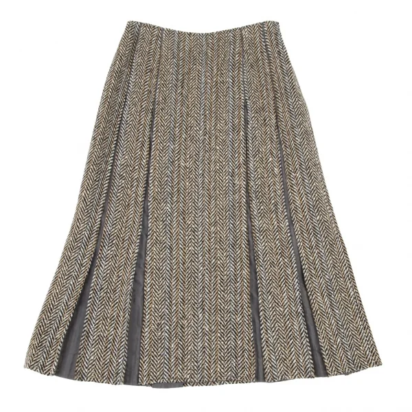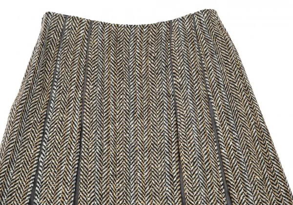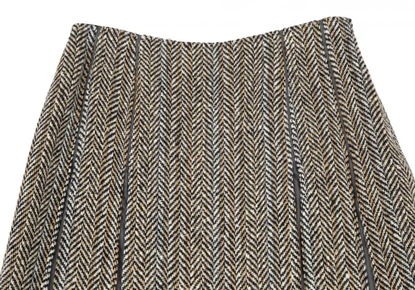 ヒロコビスHIROKO BIS ヘリンボーンツイードボックスプリーツ切替スカート ベージュ茶9