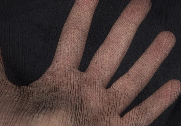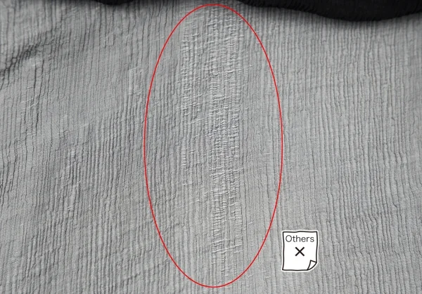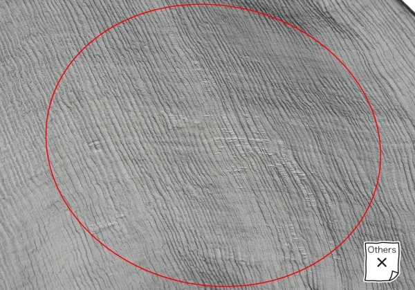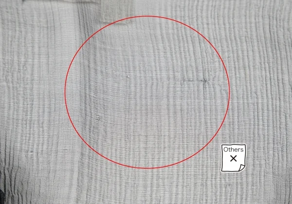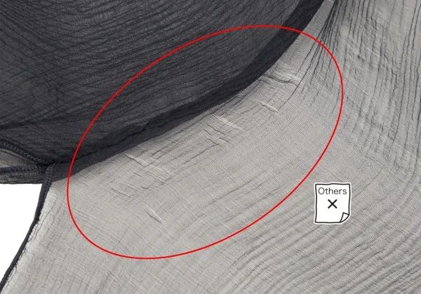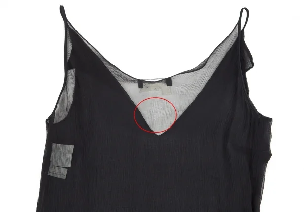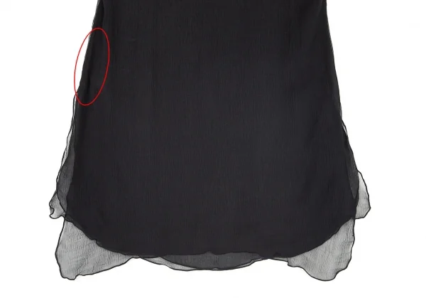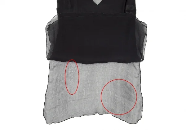 透け感のある生地です。右サイドと後ろ裾に生地のヨレ、背中に引っ掛けがあります(画像参照)。その他目立ったシミ、汚れ、ほつれ等なくいい状態です。クリーニング済み