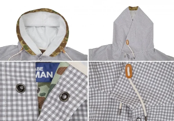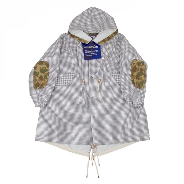 新品!ジュンヤワタナベマン コムデギャルソンJUNYA WATANABE MAN COMME des GARCONSコットンギンガムチェックモッズコート 白グレーM