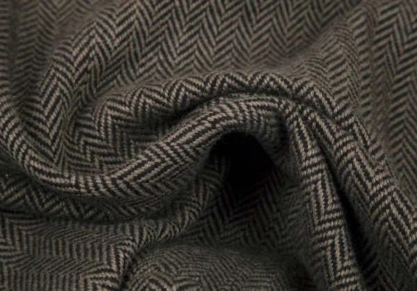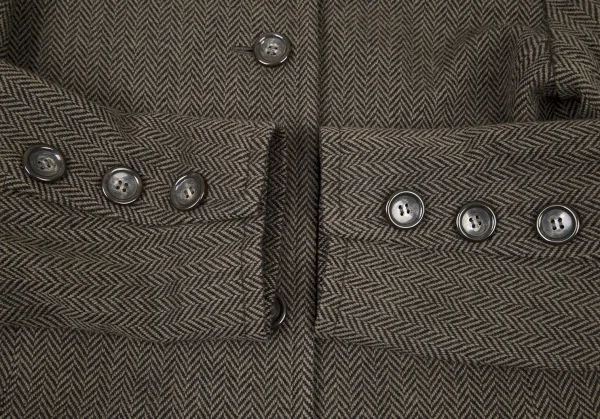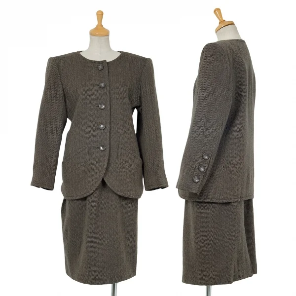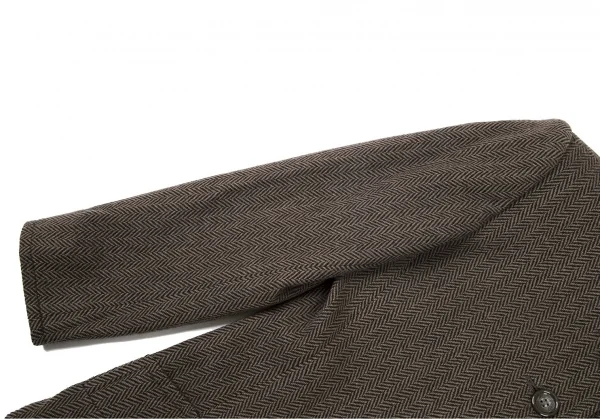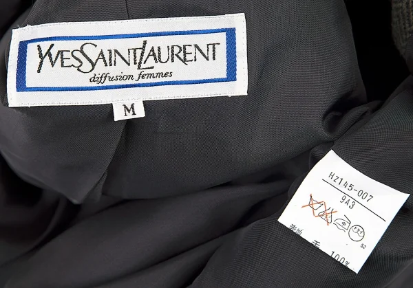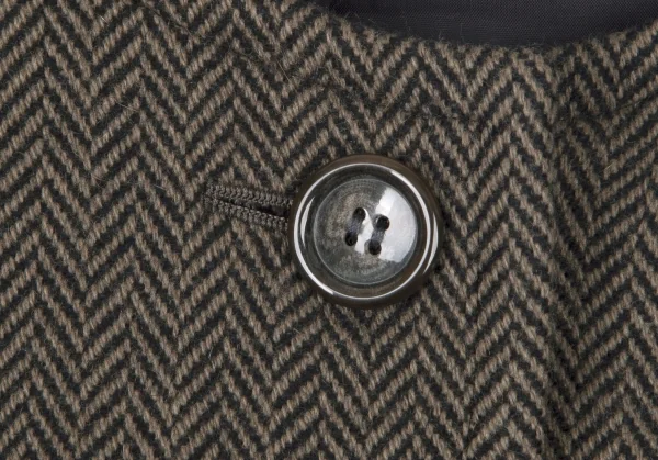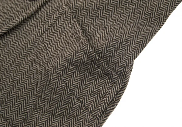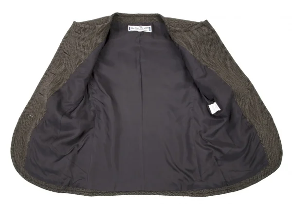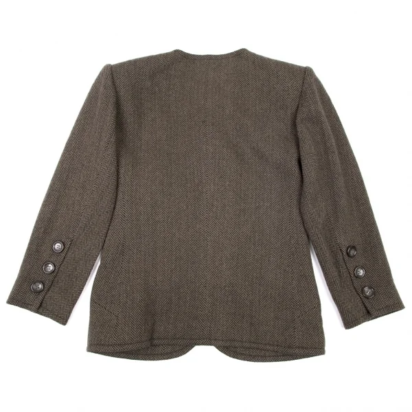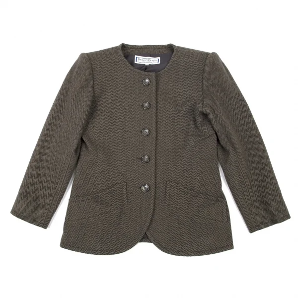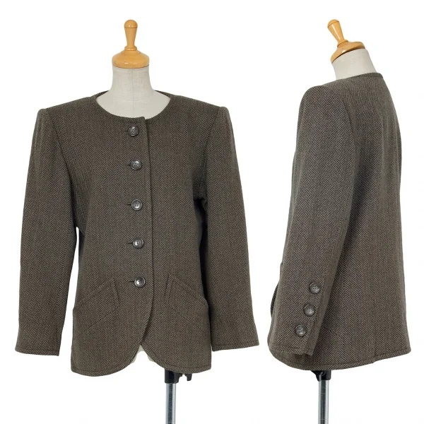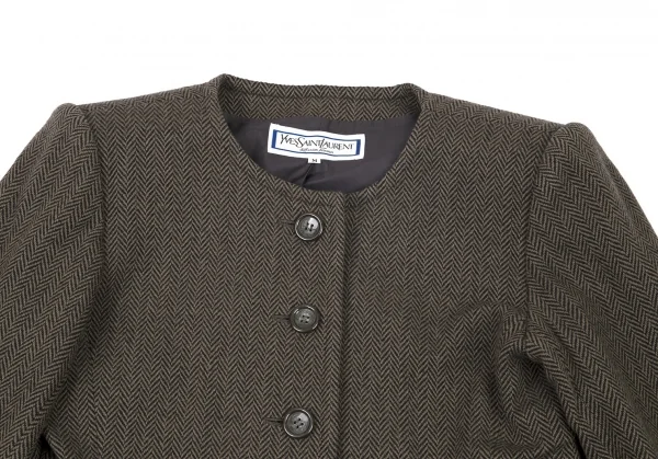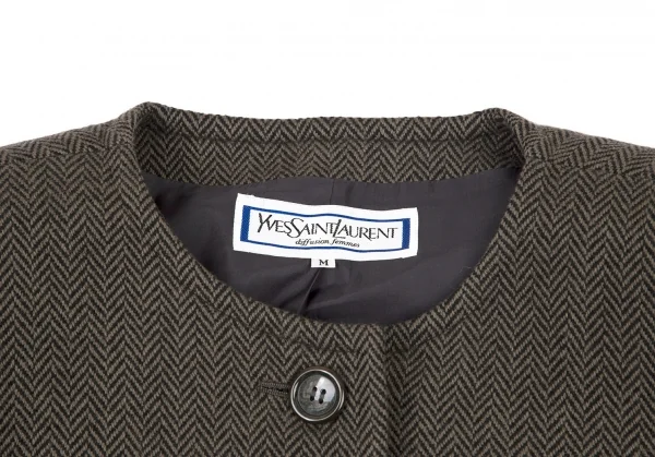 イヴサンローランYves Saint Laurent ヘリンボーンノーカラーウールジャケット 濃ベージュ黒M