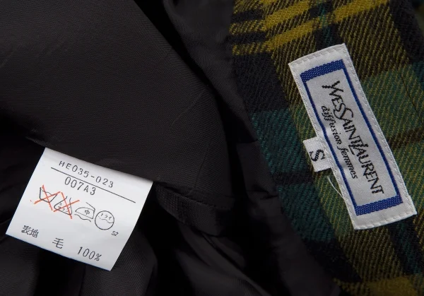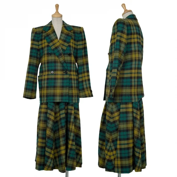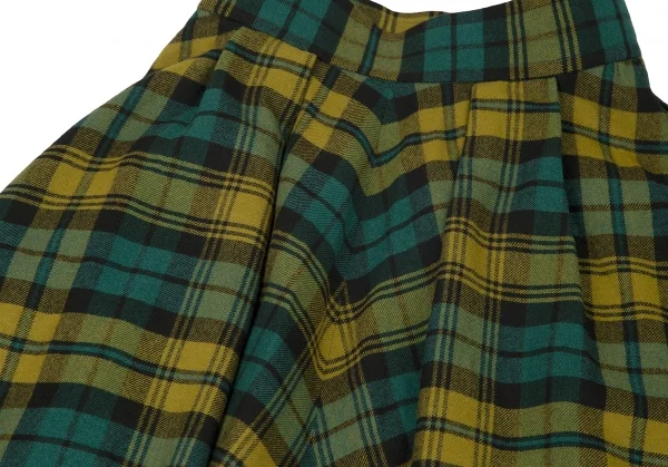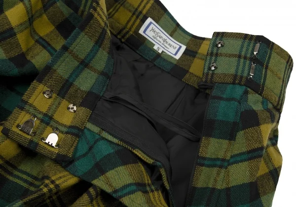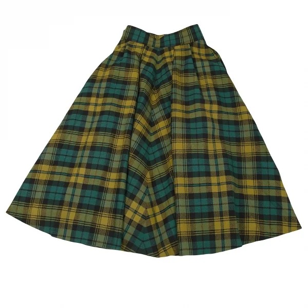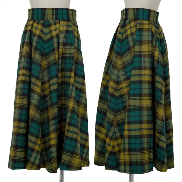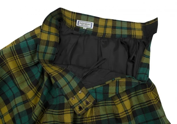 イヴサンローランYves Saint Laurent チェックウールフレアープリーツスカート 緑黄S