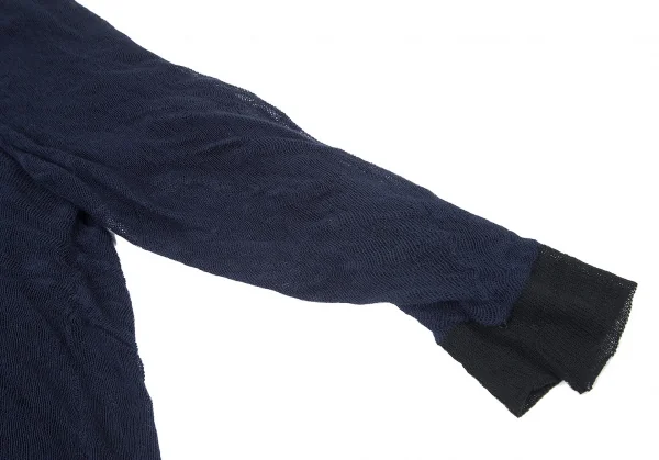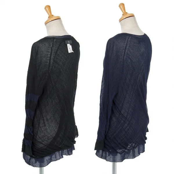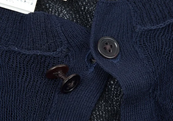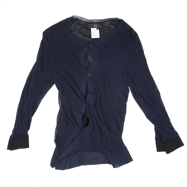 ワイズY's コットン貼り合わせバイカラーリバーシブルニットカーディガン 紺2