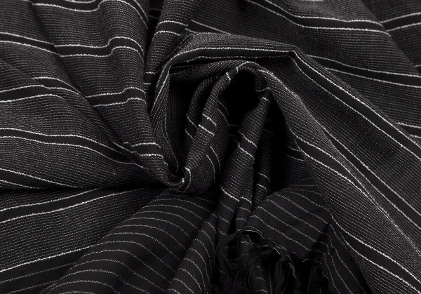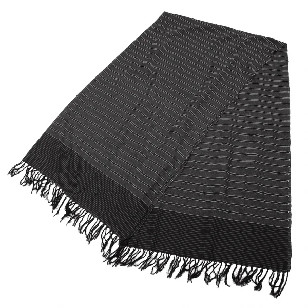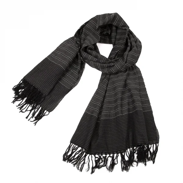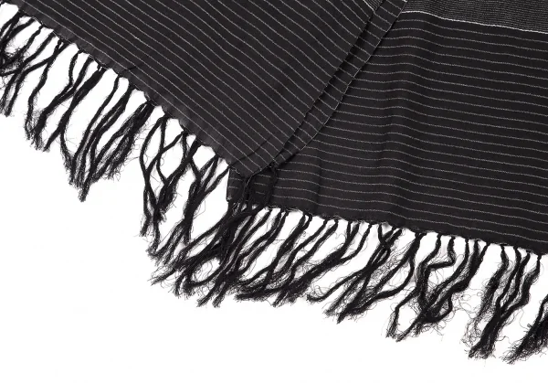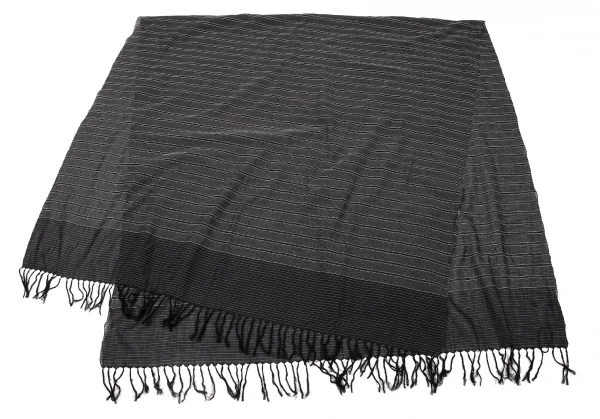 イッセイミヤケISSEY MIYAKE コットンストライプフリンジストール 黒白