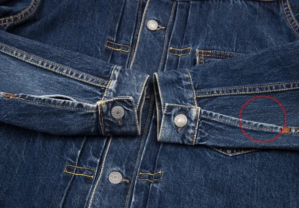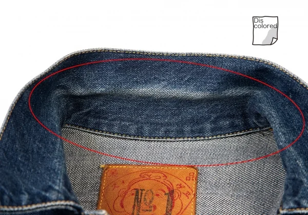 品質表示タグがありません。襟裏に色褪せ、右袖・左袖先背中にシミがあります(画像参照)。その他目立ったシミ、汚れ、ほつれ等ありません。クリーニング済み