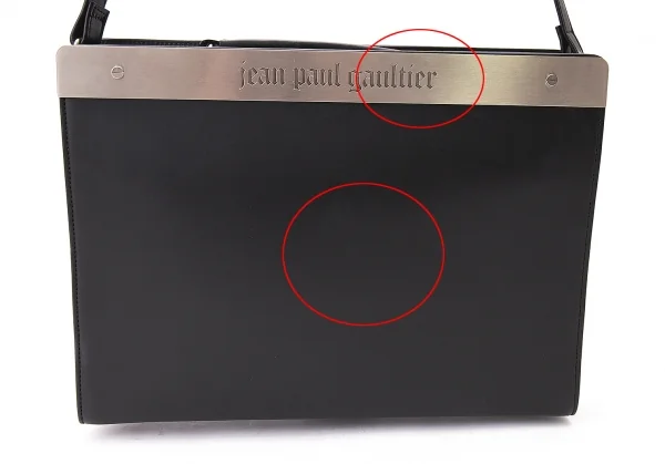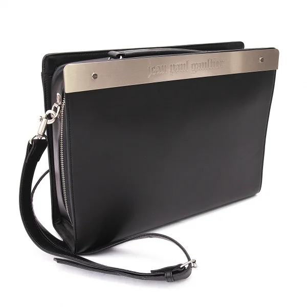 ジャンポールゴルチエJean Paul GAULTIER メタルプレートレザーショルダーバッグ 黒