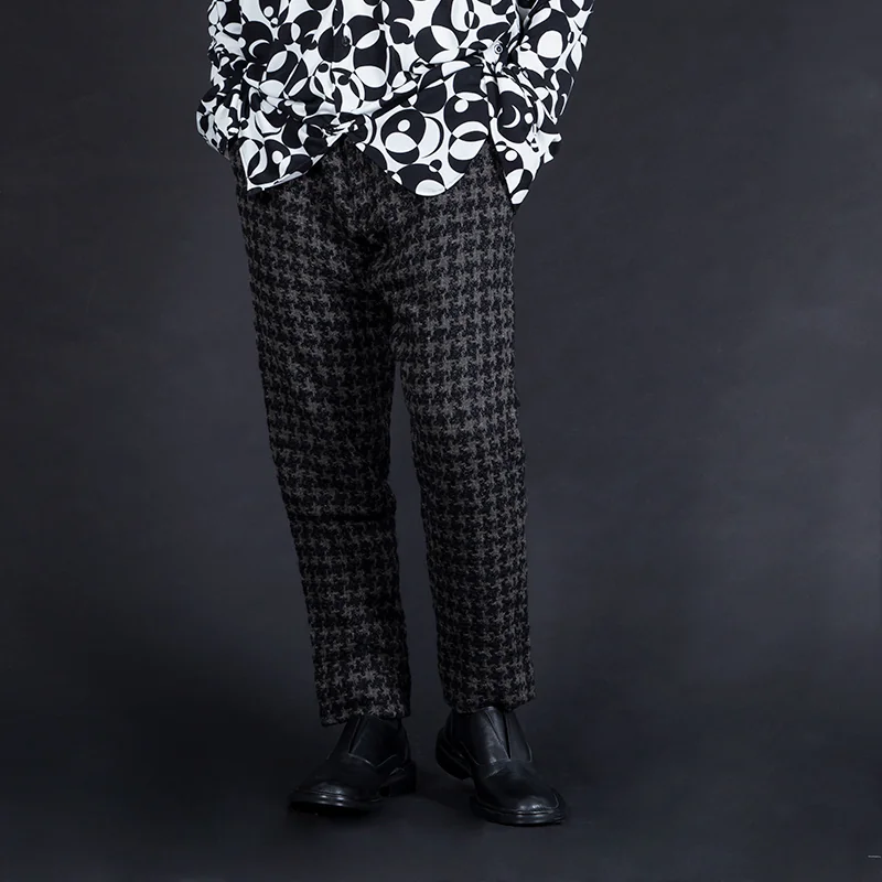 ヨウジヤマモト プールオムYohji Yamamoto POUR HOMME ウールシルクツイードニットパンツ グレー黒2