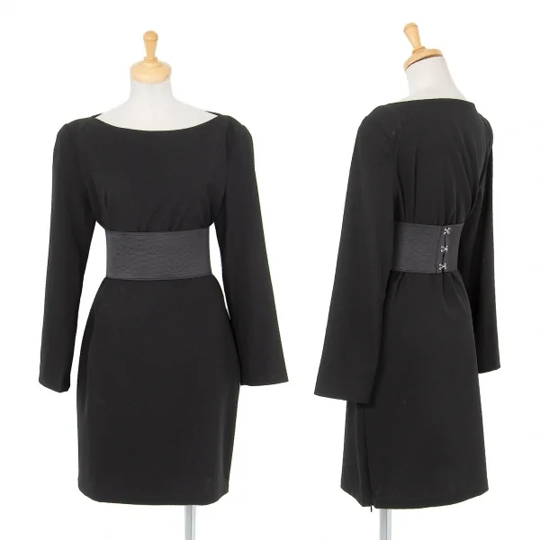 リミフゥLIMI feu ゴムベルト付きウールギャバミニマルワンピース 黒XS