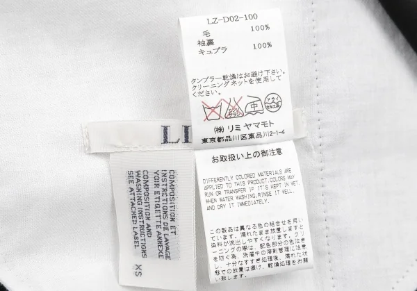 ウール100% 袖裏キュプラ100%