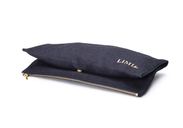 リミフゥLIMI feu ロゴプリントデニムクラッチバッグ インディゴ