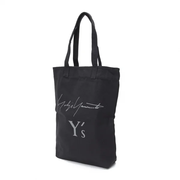 ワイズY's YYロゴプリント帆布ミニトートバッグ 黒