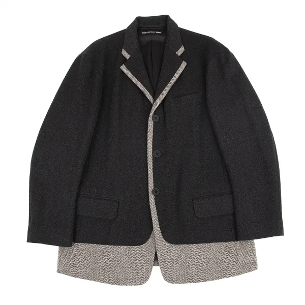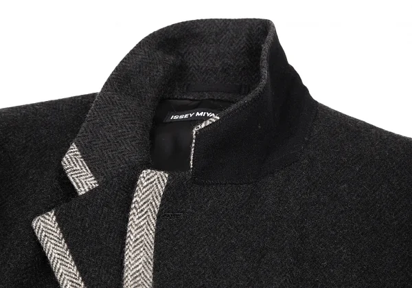 イッセイミヤケ メンISSEY MIYAKE MEN バイカラーヘリンボーン3Bジャケット チャコールグレー3
