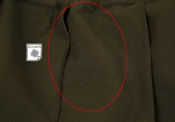 ゴムウエストですが、紐で調整できます。全体的に毛羽立ちあり、ヒップに毛玉・毛羽立ちがあります(画像参照)。その他目立ったシミ、汚れ、ほつれ等ありません。クリーニング済み