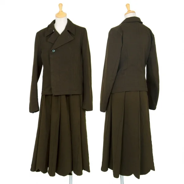 ローブドシャンブル コムデギャルソンrobe de chambre COMME des GARCONS製品染めエステル波カットプリーツスカート カーキM