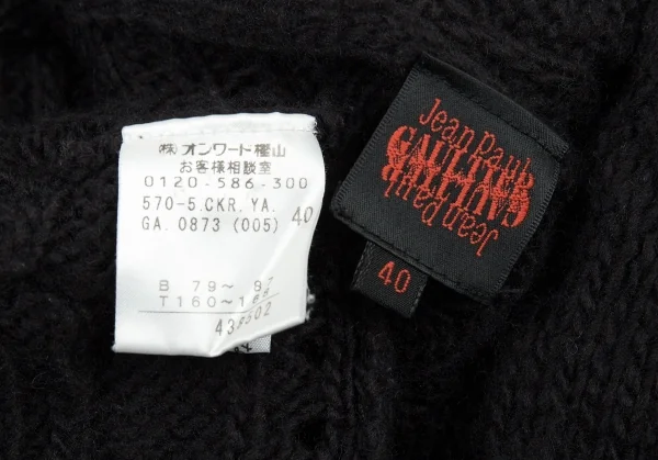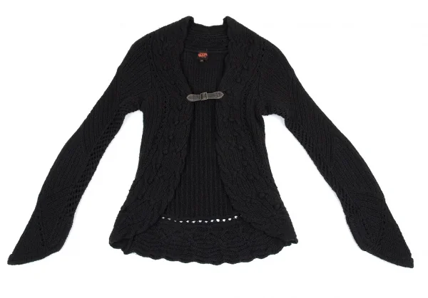 ジャンポールゴルチエJean Paul GAULTIER ベルト留めケーブルニットカーディガン 黒40