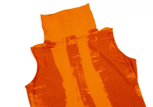 ジャンポールゴルチエ ファムJean Paul GAULTIER FEMME チェッカードビーグラフィックプリントハイネックノースリーブ オレンジ40