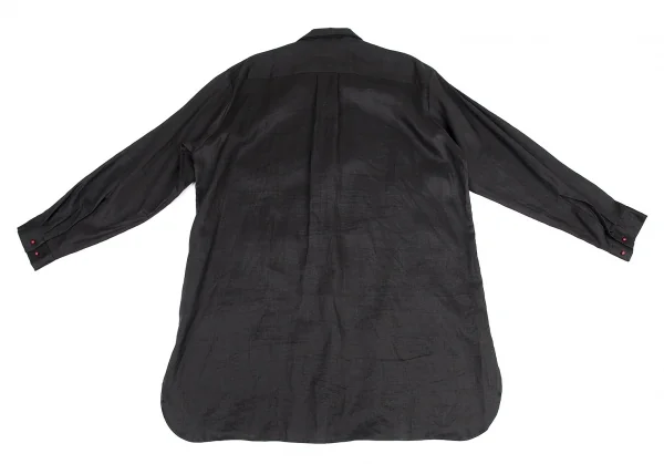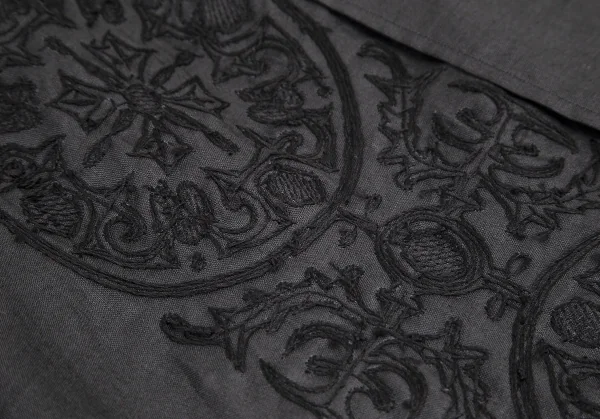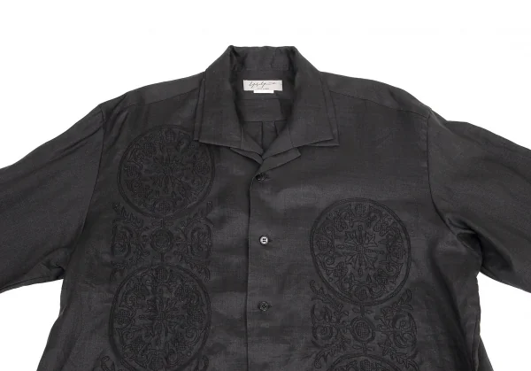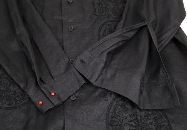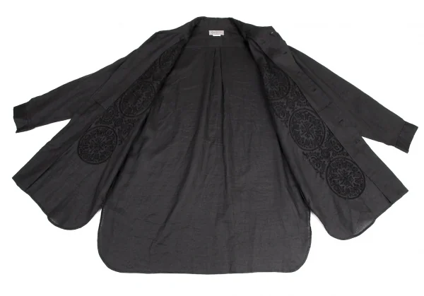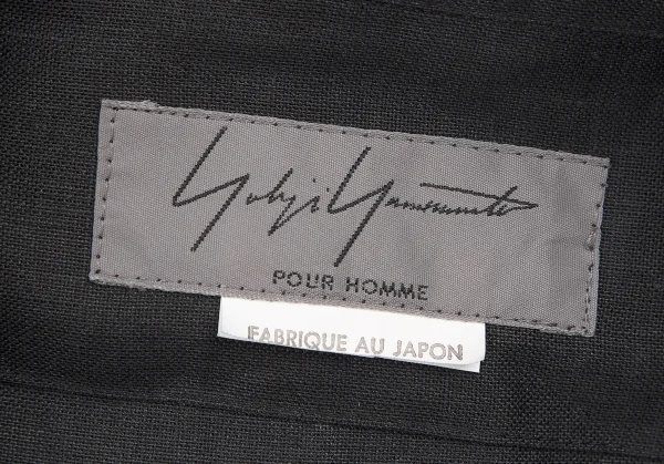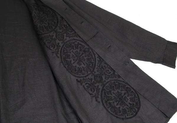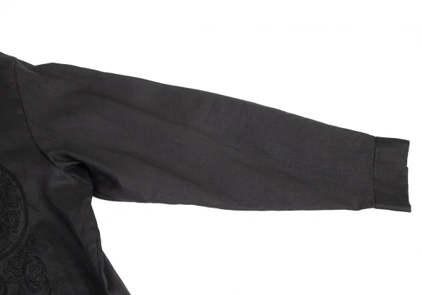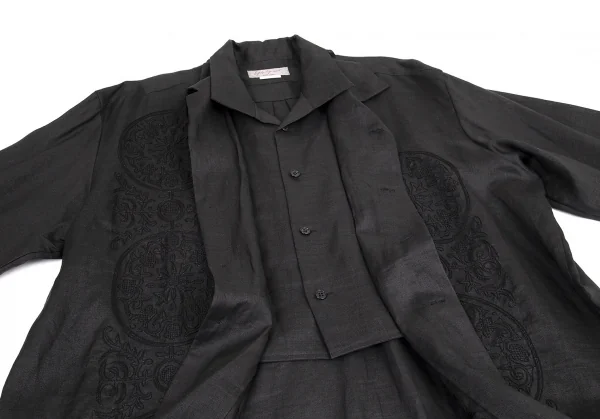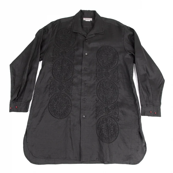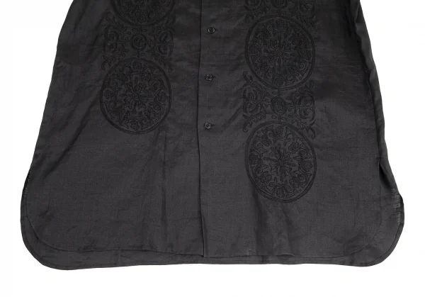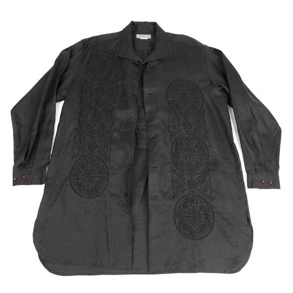 ヨウジヤマモト プールオムYohji Yamamoto POUR HOMME リネンエスニック刺繍前立レイヤードロングシャツ 黒M位