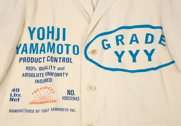 ヨウジヤマモト プールオムYohji Yamamoto POUR HOMME リネンサインプリントジャケット 生成り青M