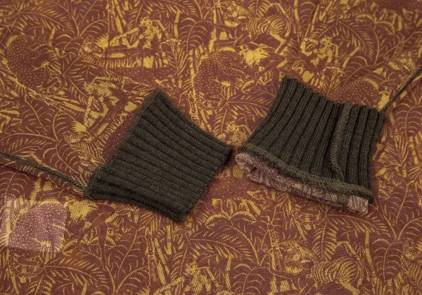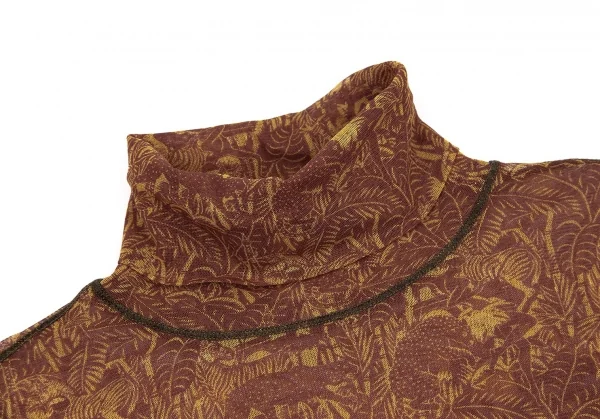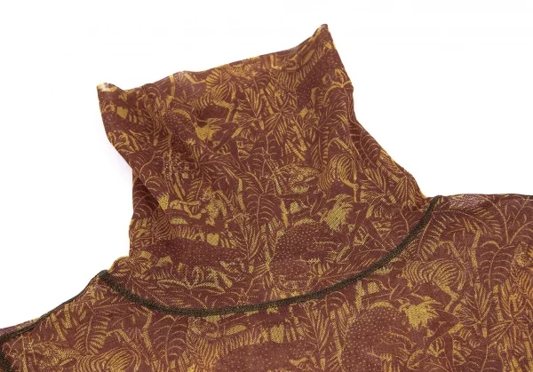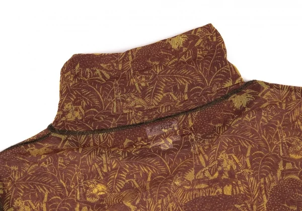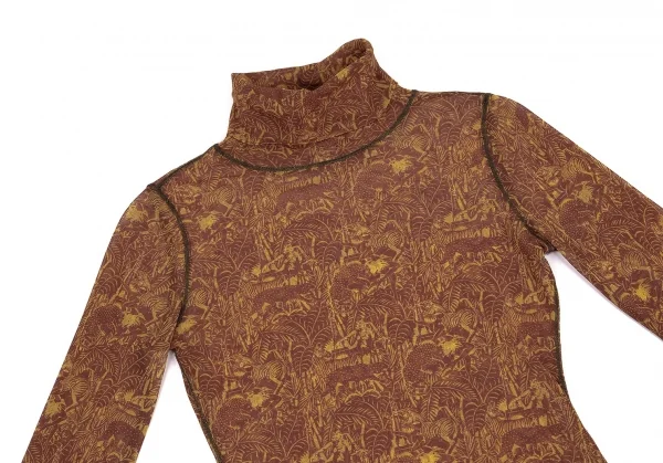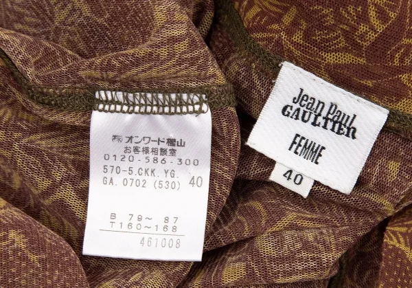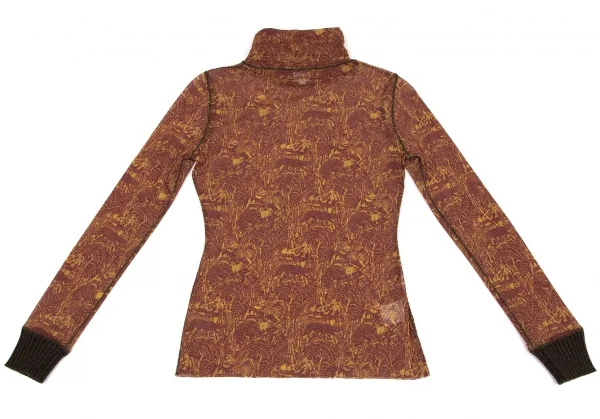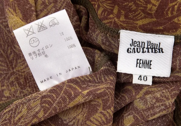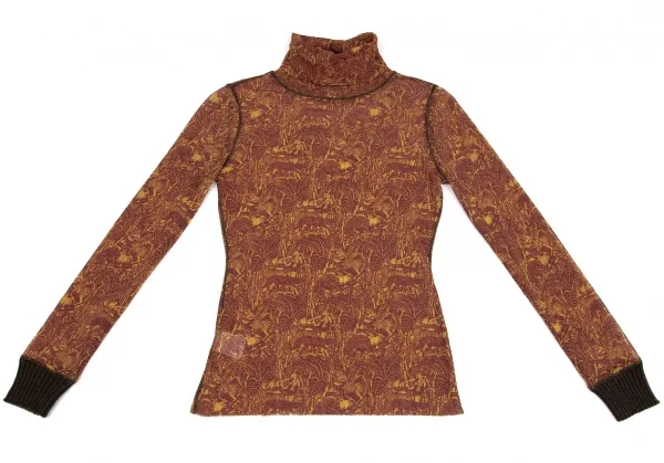 ジャンポールゴルチエ ファムJean Paul GAULTIER FEMME リブ切替タートルネックプリントパワーネットカットソー レンガカーキ40