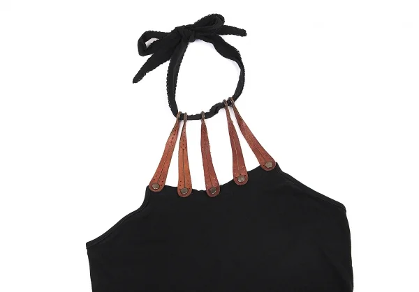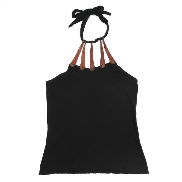 ジャンポールゴルチエ ファムJean Paul GAULTIER FEMME レザーホルターネックキャミ 黒40