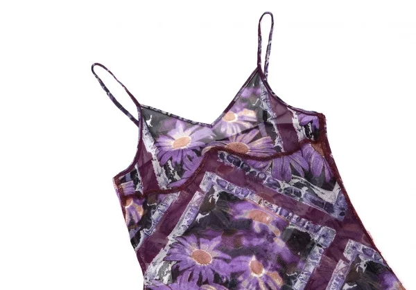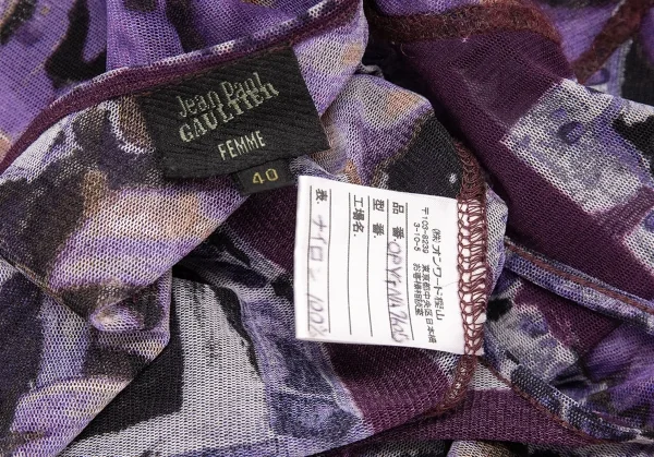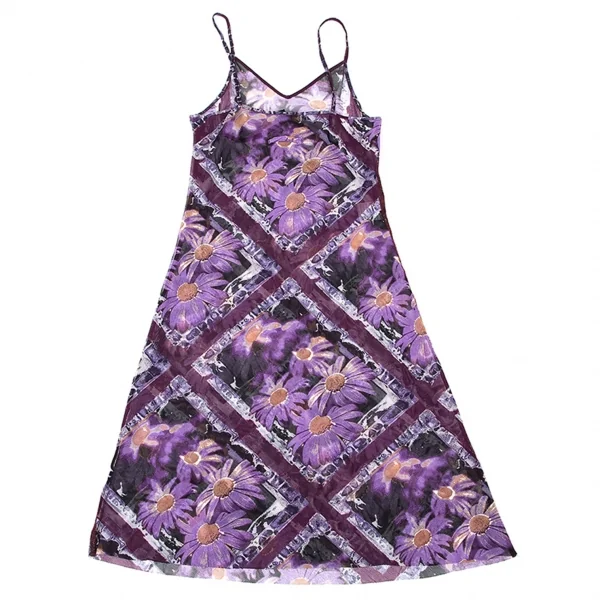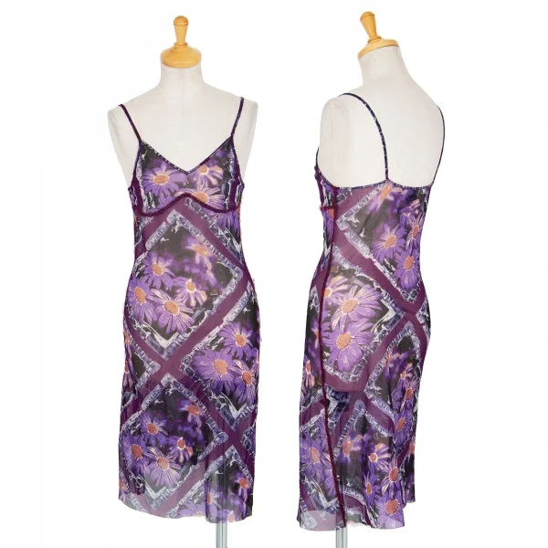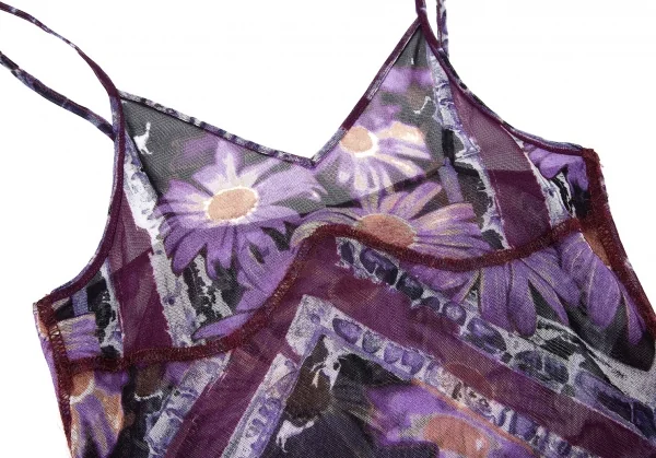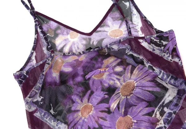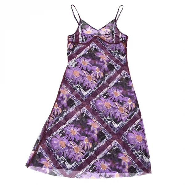 ジャンポールゴルチエファムJean Paul GAULTIER FEMME フラワープリントパワーネットキャミワンピース 紫M位