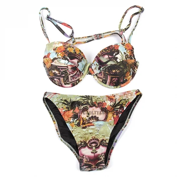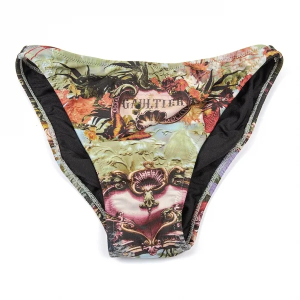 ジャンポールゴルチエ ソレイユJean Paul GAULTIER SOLEIL トロピカルゴシックプリントビキニスイムウェア カーキ紫40