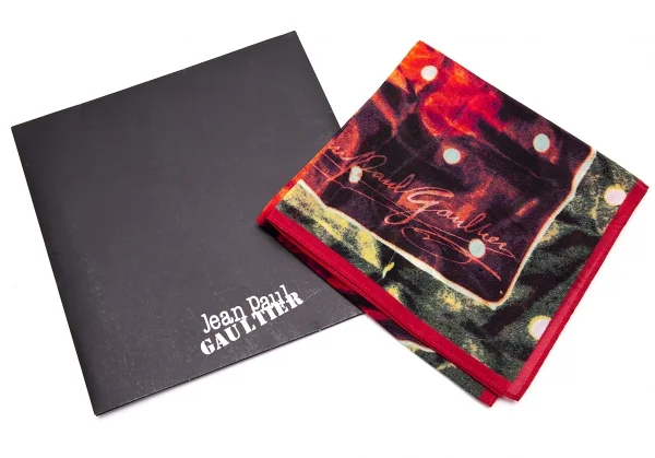 新品!ジャンポールゴルチエJean Paul GAULTIER グラフィックプリントハンカチ ワインカーキ