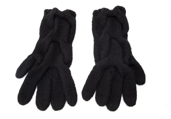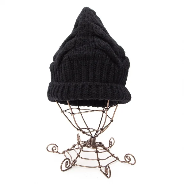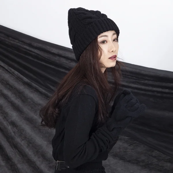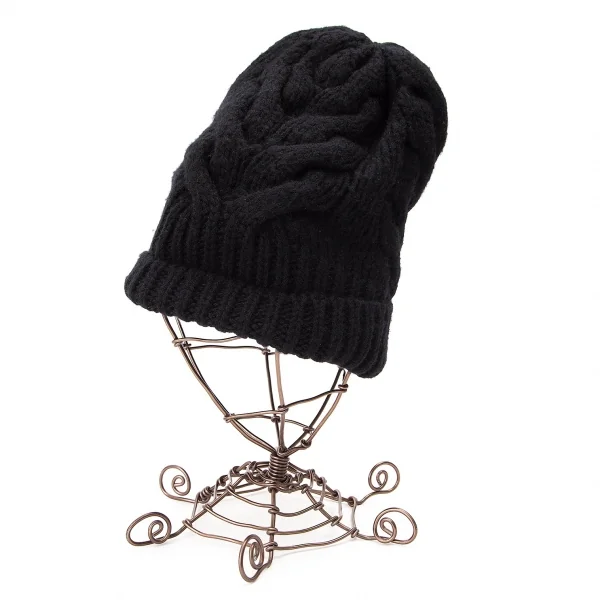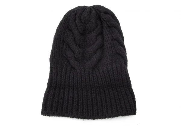 ワイズY's ウールケーブルニットグローブ&ニットキャップ 黒