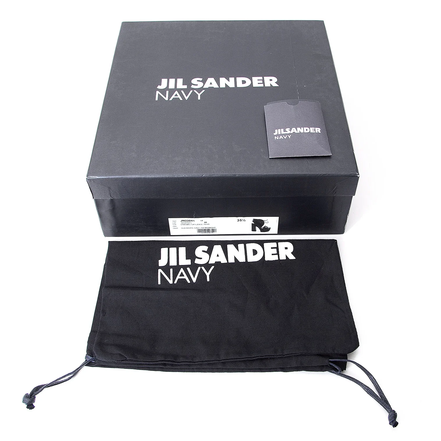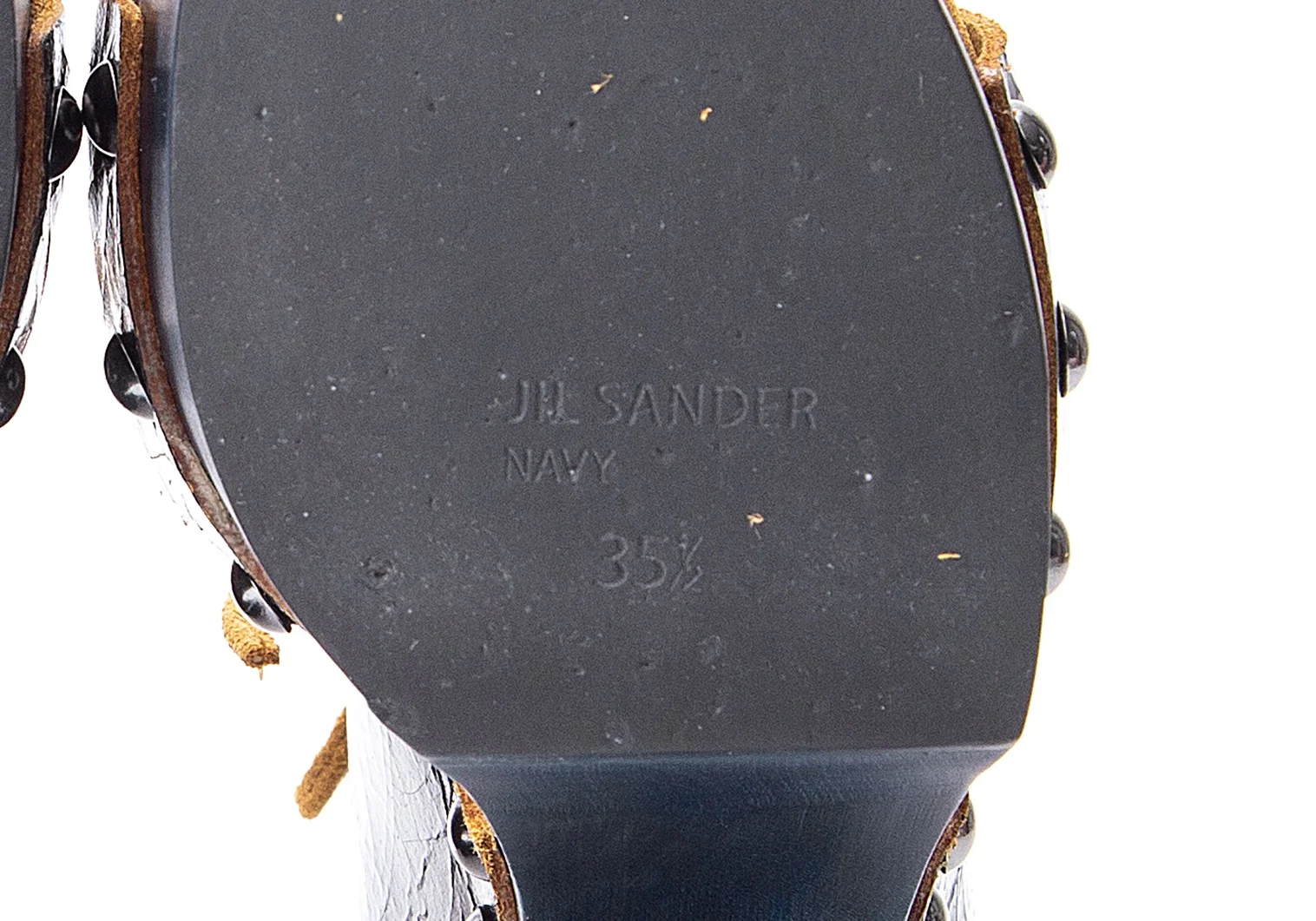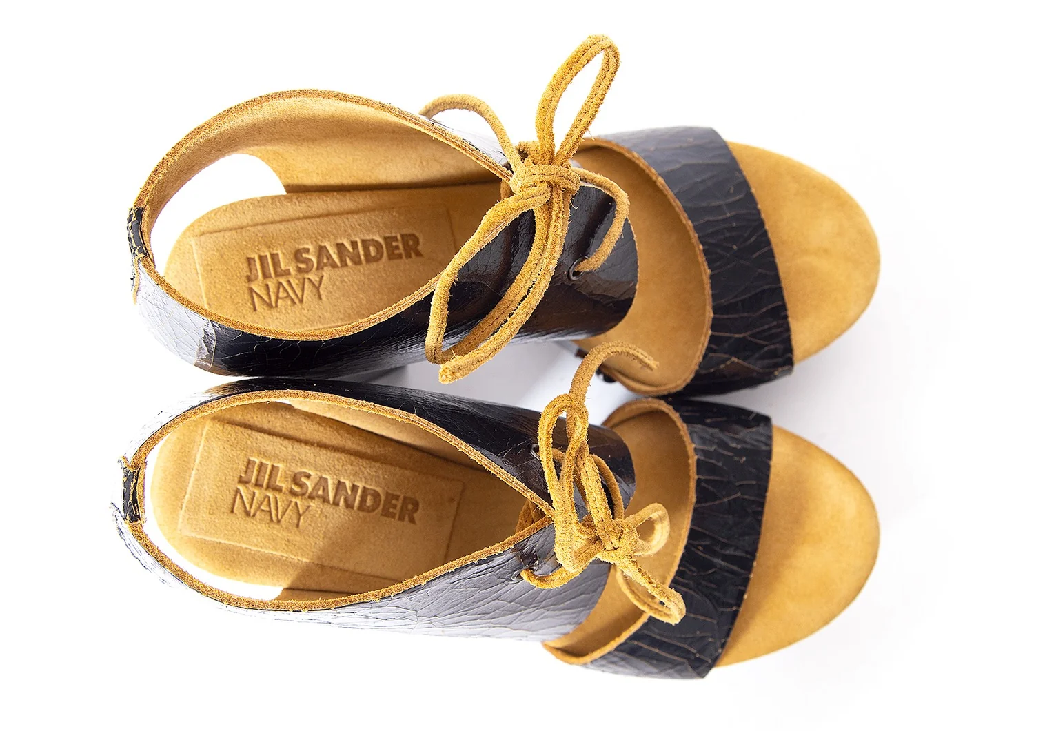 ジルサンダーネイビーJIL SANDER NAVY クラックレザーチャンキーヒールサンダル 紺35.5(22.5位)