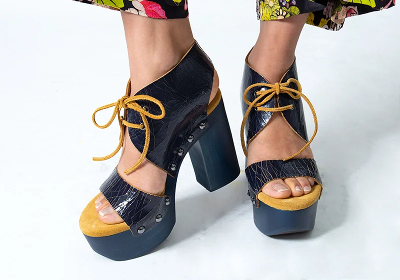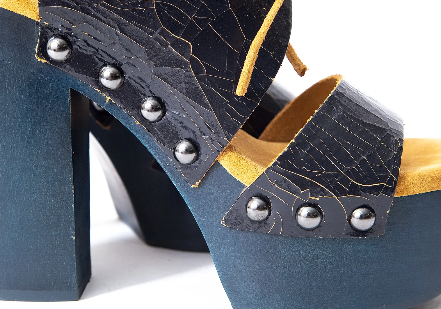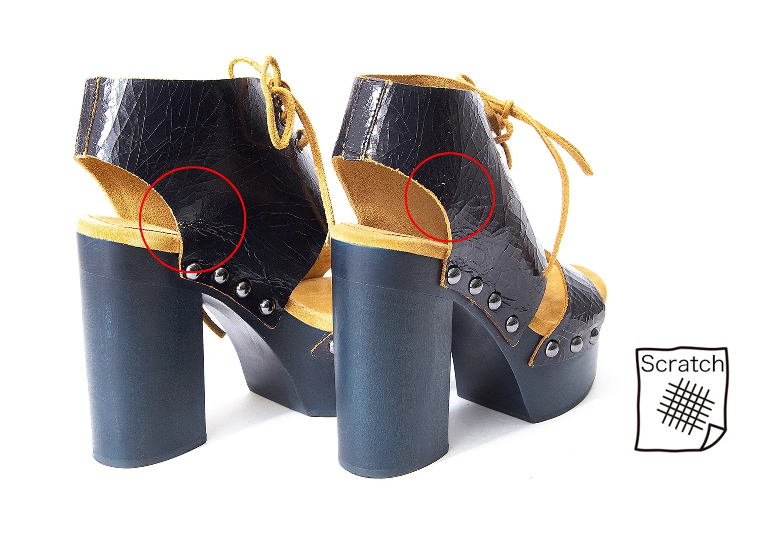ジルサンダーネイビーJIL SANDER NAVY クラックレザーチャンキーヒールサンダル 紺35.5(22.5位)