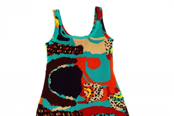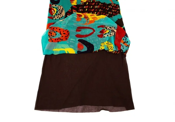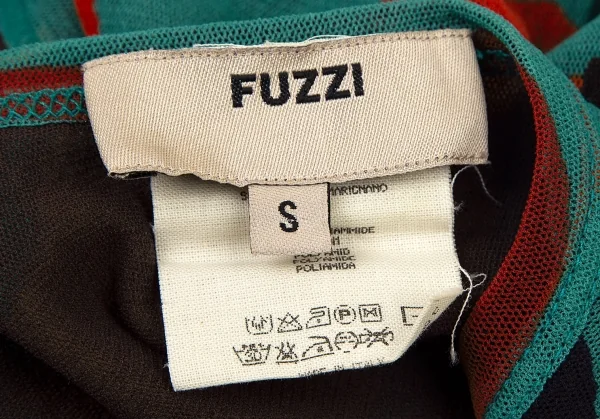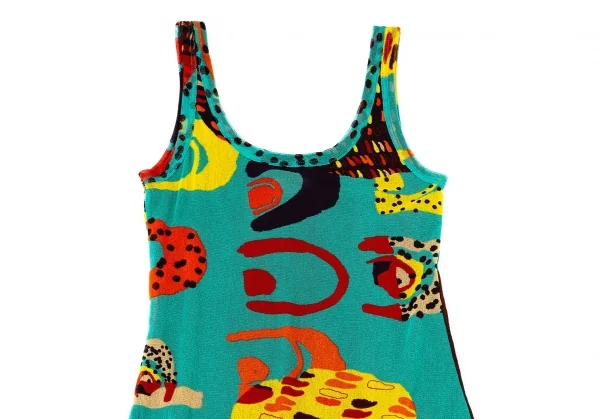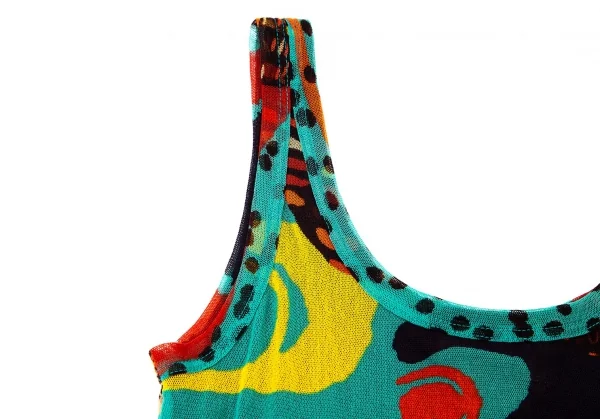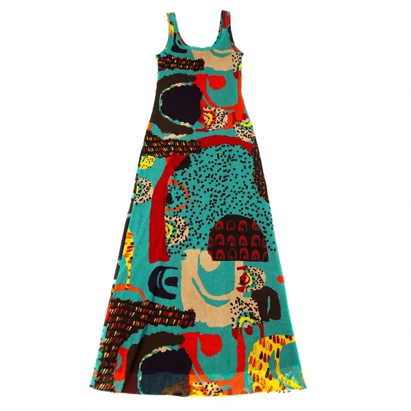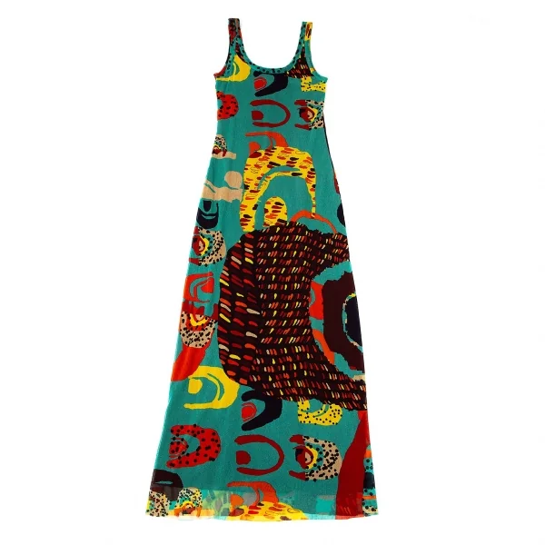 ファジーFUZZI グラフィックプリントパワーネットノースリーブマキシワンピース 緑マルチS
