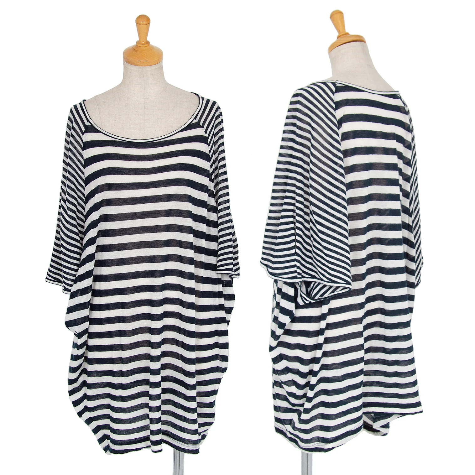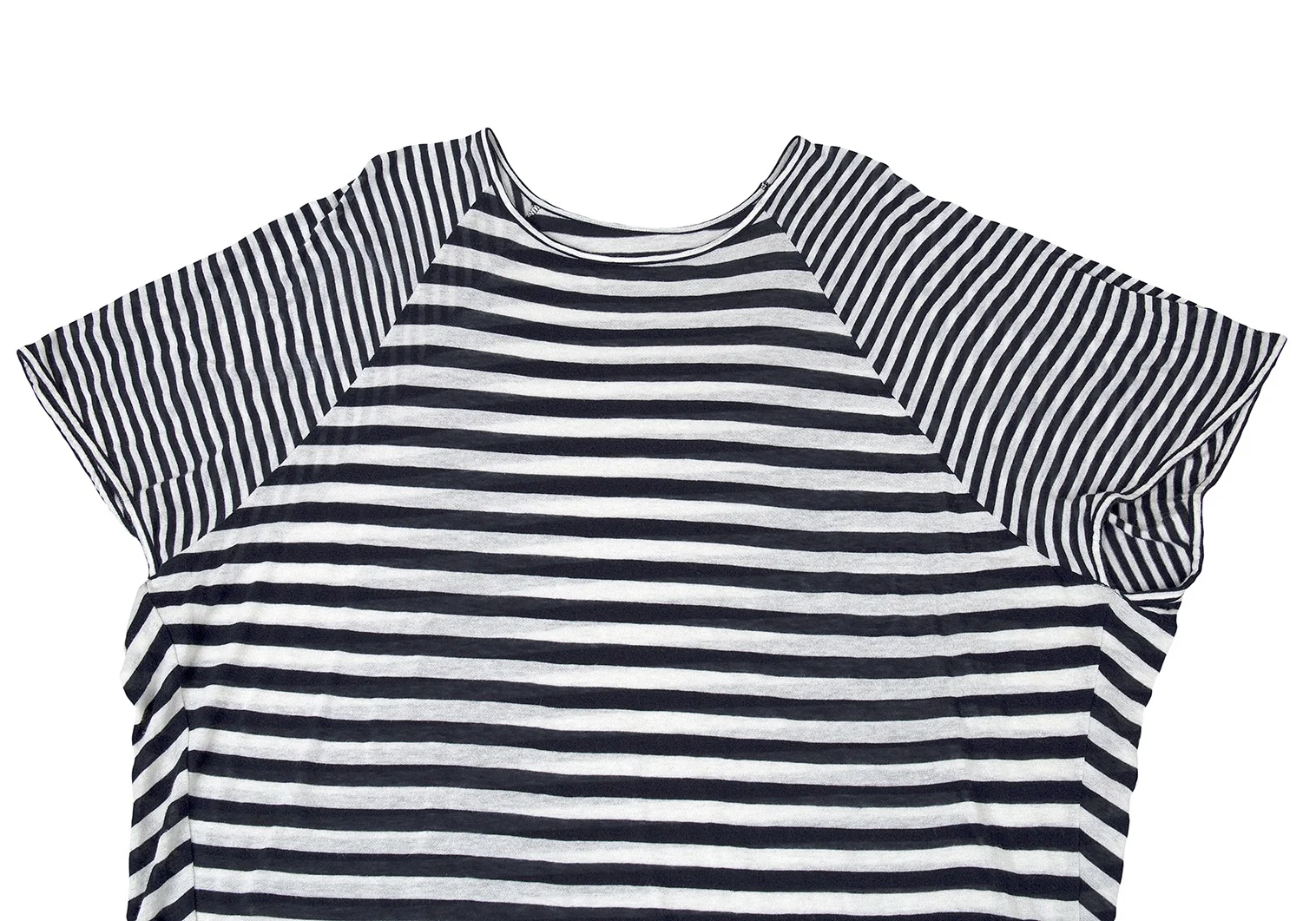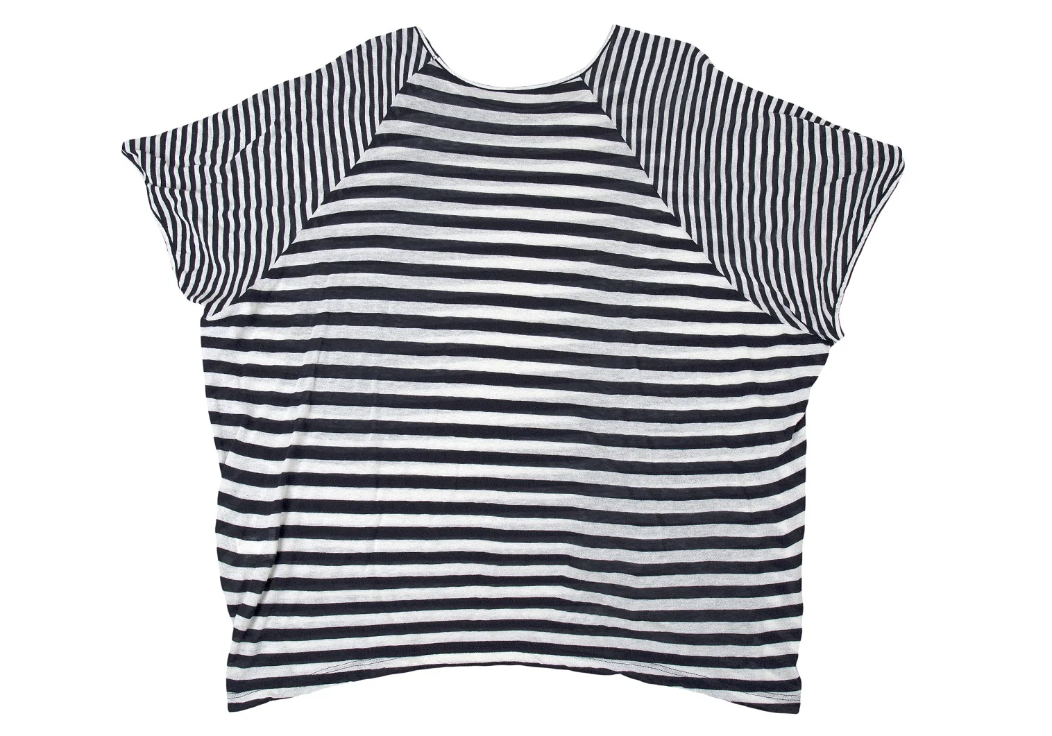 ワイズY's ボーダー切替ビッグシルエットラグランカットソー 紺オフ2