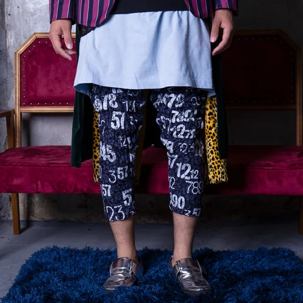 コムデギャルソン オムプリュスCOMME des GARCONS HOMME PLUS ナンバープリントレースシャーリングパンツ 紺白XS