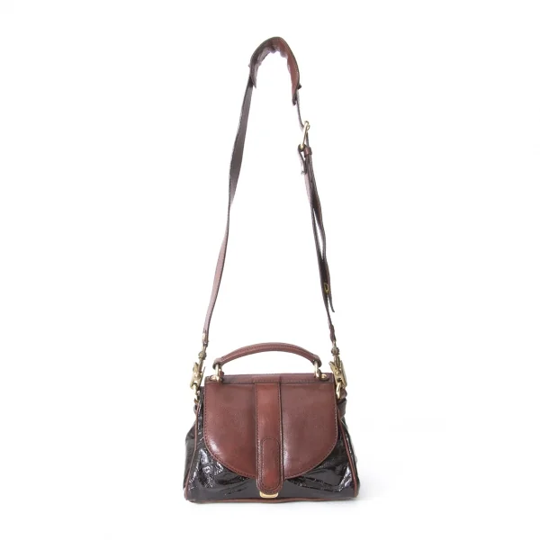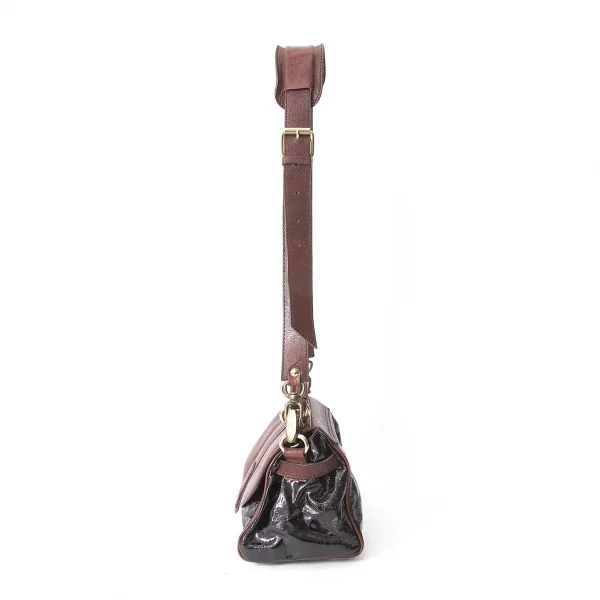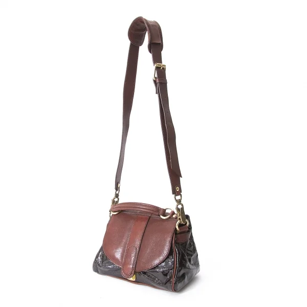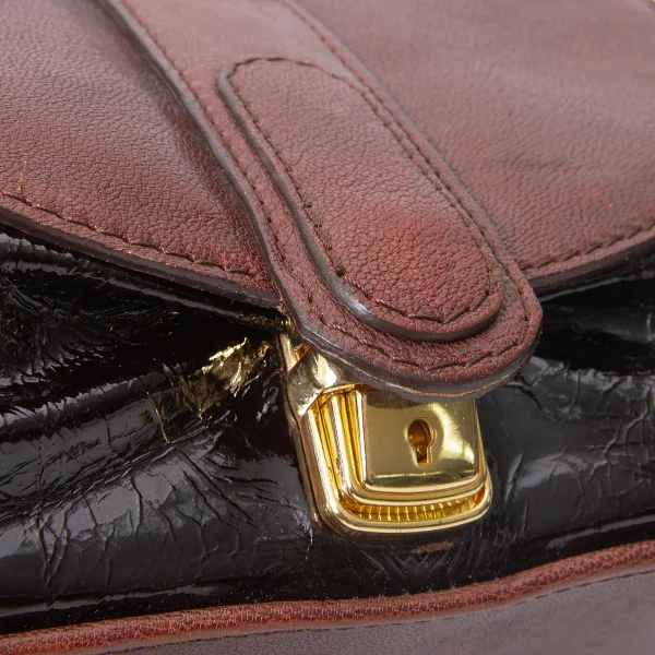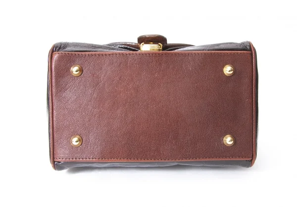 コレクションプリヴェ?collection PRIVEE? レザー切替ショルダーミニボストンバッグ 黒茶