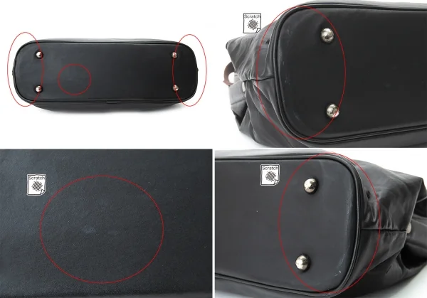 前後、角、底、持ち手にスレ、開口部にキズがあります(写真参照)。全体的に使用感がありますが、ご使用には問題ありません。