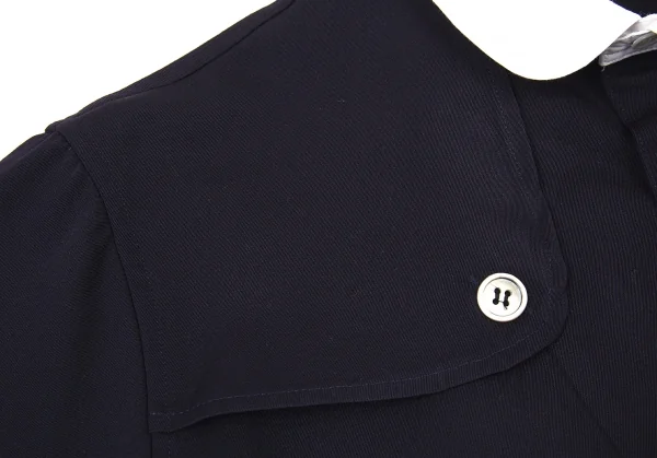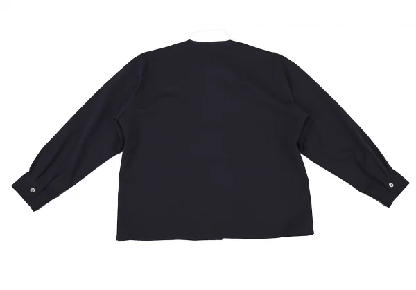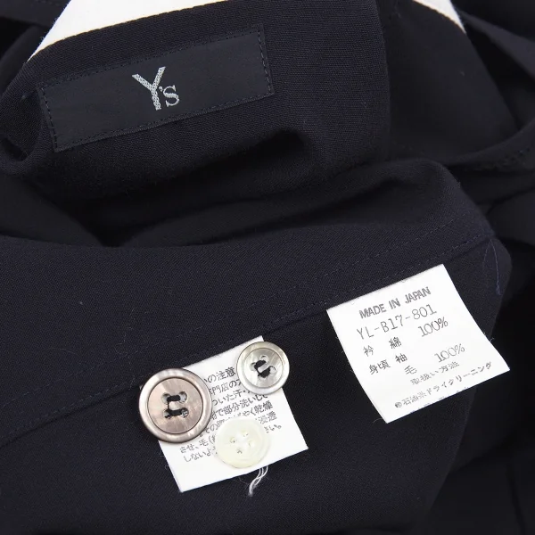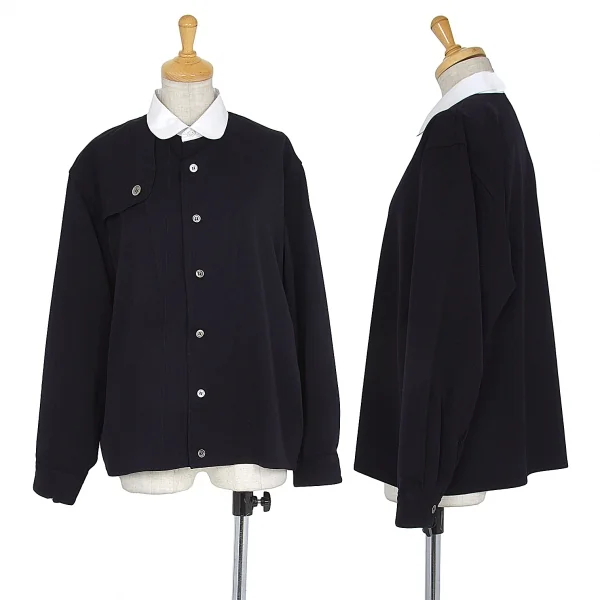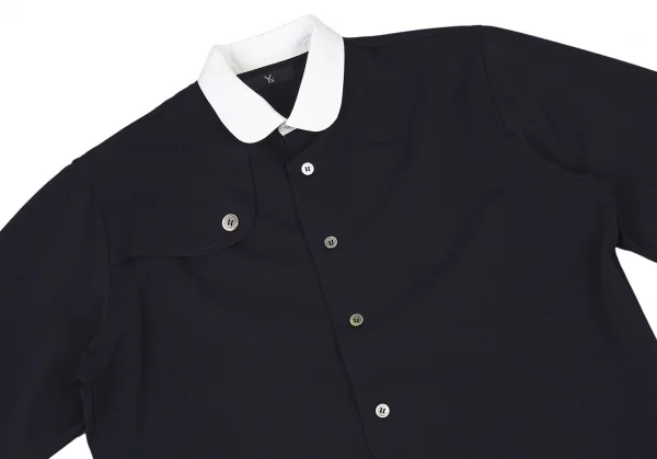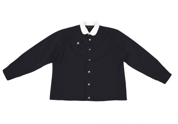 ワイズY's ガンパッチ付きウールギャバシャツジャケット 紺白M位