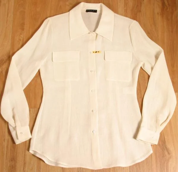 グッチGUCCI リネンレーヨン長袖シャツ Z ベージュ40