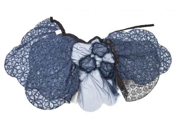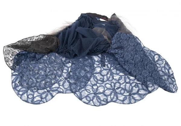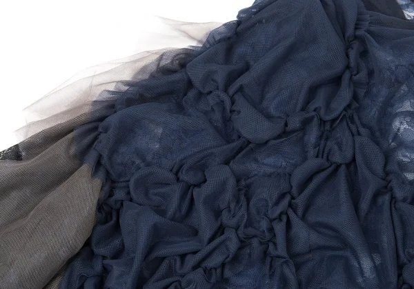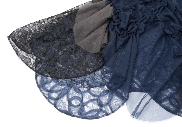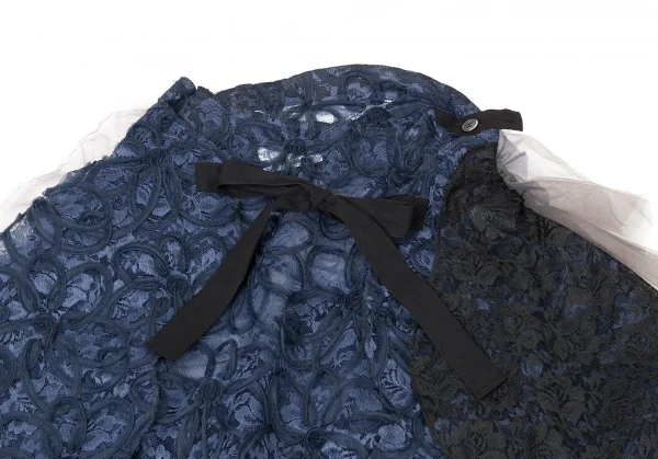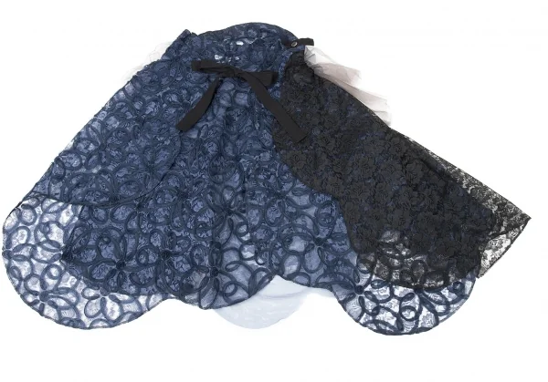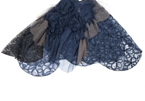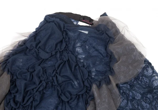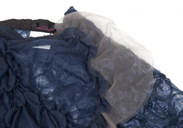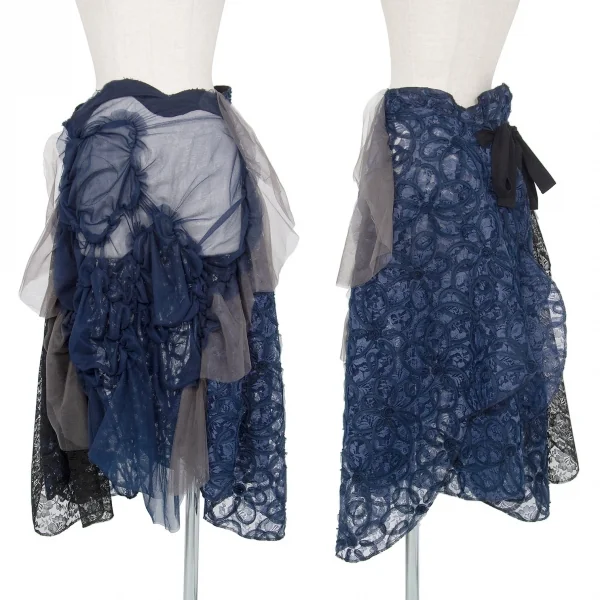 トリコ コムデギャルソン トリコスペシャルtricot COMME des GARCONS tricot Special フロントギャザーチュール切替レースラップスカート 紺黒M位
